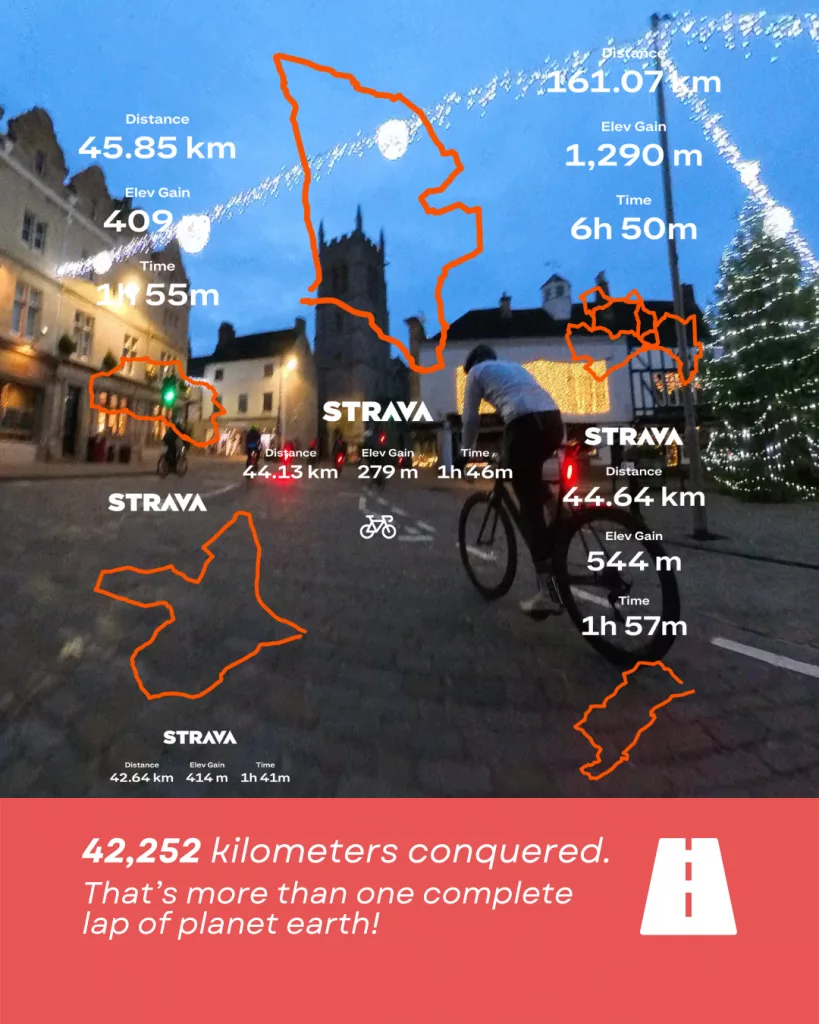 The stats from 2025 are absolutely mind-blowing. Our regulars collectively clocked up 42,252 kilometres – that’s enough to lap the entire planet Earth. And if that wasn’t impressive enough, we’ve climbed a combined 267,221 metres, which is the equivalent of tackling Mount Everest 29 times over. These aren’t just numbers on a screen; they’re memories of early morning starts, windswept rides through Oakham and those brilliant descents where you feel absolutely alive.